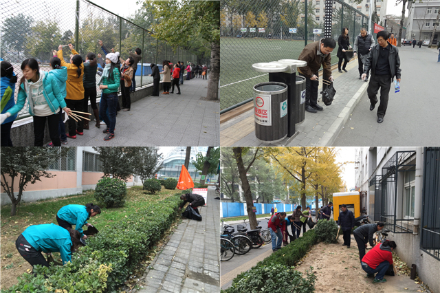 集團黨委廣泛動員,各黨支部組織全體干部職工積極參與到本次清掃活動中。物業(yè)服務(wù)中心將中關(guān)村校區(qū)內(nèi)的主要路面及綠地劃分為10個區(qū)域(含家屬區(qū)、教學(xué)區(qū)、宿舍區(qū)),分別由10個黨支部牽頭負(fù)責(zé),重點清理綠地、綠籬中的白色垃圾、枯枝以及綠地周邊的自行車、路面不易清掃的衛(wèi)生死角。
