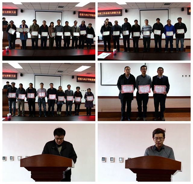 何遵文副院長宣讀了關(guān)于表彰保密工作先進個人、先進集體及保密資質(zhì)認證(復(fù)查)工作優(yōu)秀組織單位的決定,趙顯利副校長、鄭重處長和學(xué)院領(lǐng)導(dǎo)分別為受表彰的集體和個人頒發(fā)了榮譽證書。陶然教授課題組趙興浩老師和吳嗣亮教授課題組李海老師分別做保密工作經(jīng)驗交流發(fā)言。