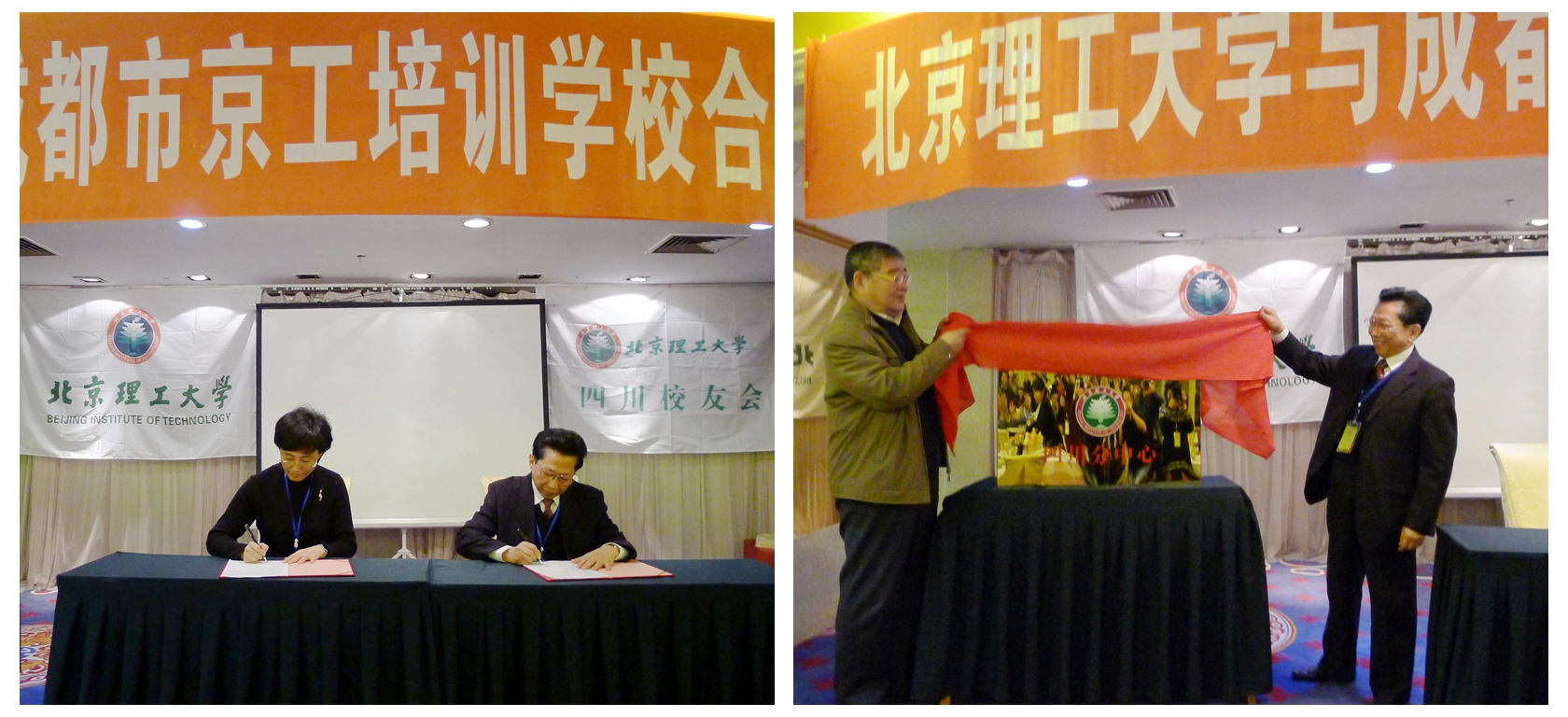 北京理工大學(xué)繼續(xù)教育學(xué)院史彥主任和四川校友會鄒名高會長共同簽署了北京理工大學(xué)教育培訓(xùn)中心四川分中心——成都市京工培訓(xùn)學(xué)校成立文件,學(xué)校原黨委書記焦文俊和鄒名高會長共同為成都市京工培訓(xùn)中心揭牌。2013年座談會中,四川校友們一致希望并建議母校能在成都——這個(gè)西南地區(qū)的中心規(guī)劃并創(chuàng)建一個(gè)教育培訓(xùn)中心,以適應(yīng)國家實(shí)施西部大開發(fā)的戰(zhàn)略需要及西南地區(qū)國防高端人才培養(yǎng)的強(qiáng)烈需求,并擴(kuò)大學(xué)校的社會影響力。經(jīng)過近兩年的籌備、策劃,如今由母校與校友共同合辦的成都市京工培訓(xùn)學(xué)校終于成立了。