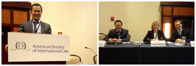 2015年4月8日-11日,應(yīng)美國國際法學(xué)會的邀請,王國語參加了在華盛頓舉行的美國國際法學(xué)會第109次會議,并在其首次設(shè)立的空間法論壇做題為“飛速發(fā)展的行星采礦與相對停滯的空間法體系”的報告。