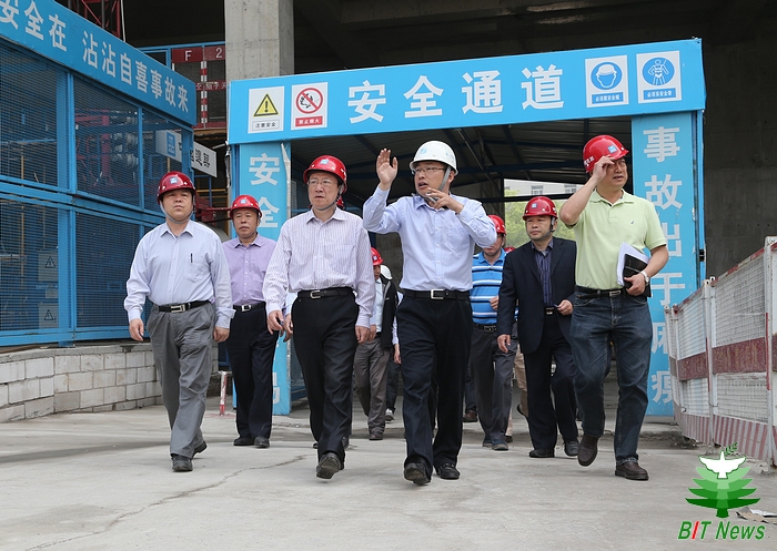 “五一”勞動節(jié)前夕, 黨委書記張煒一行到國防科技園工地視察指導(dǎo)工作,并慰問了奮戰(zhàn)在一線的建設(shè)人員。同行人員有常務(wù)副校長楊賓、副校長趙平、副校長李和章,資產(chǎn)經(jīng)營公司、基建處、財務(wù)處、后勤集團負責(zé)人,中建八局(北京)、承建單位、監(jiān)理單位等有關(guān)部門的負責(zé)人。視察施工現(xiàn)場后,資產(chǎn)公司、工程承建單位、監(jiān)理單位、項目部負責(zé)人就工程管理、工程進度、工程監(jiān)理和工程建設(shè)等情況進行了匯報。楊賓、趙平和李和章分別對后續(xù)工作提出了要求和部署。