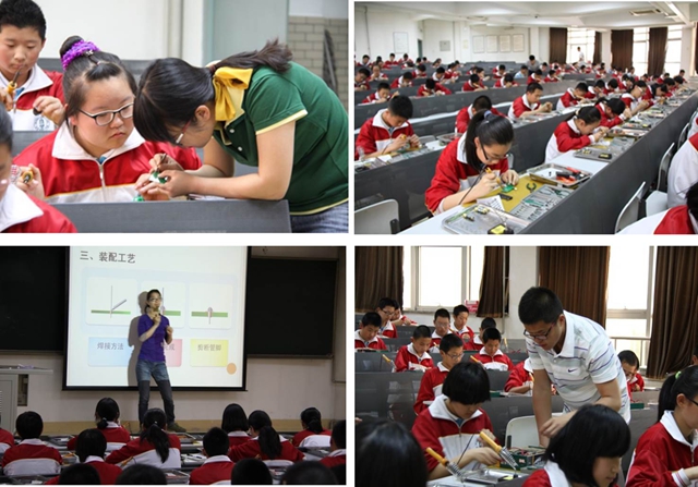 北京市第十中學的全體師生不畏辛苦,一大早就乘坐大客車前往我校,課上師生嚴肅認真,熱情活躍,全部按照課程的要求完成科技實踐作品,本次課程得到了師生的一致好評,對于中學生在科技認識和激發(fā)興趣方面效果顯著。