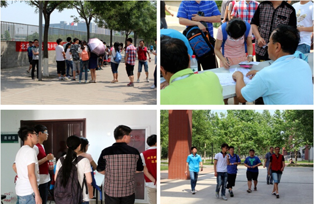 北京提早到來的酷夏并沒有給測試工作增添困難,由于測試人數(shù)較多,每天不到八點,房山區(qū)語委的老師便來到測試地點進行當(dāng)天的工作安排:身份驗證、簽到、分考場等,每項工作都井然有序。由延河之星志愿者總隊派出的志愿者們也不辭辛苦,早早來到考場輔助監(jiān)考老師做好考前的工作安排,搬桌子、搬椅子、貼考號、核對考生信息、組織考生候場等。由于普通話測試有些特殊性,對測試環(huán)境要求高,需要無干擾、無雜音,所以測試點安排在疏C地下室9個學(xué)生社團辦公室和基礎(chǔ)教育學(xué)院的4個教師辦公室內(nèi)進行,志愿者們冒著酷暑,一趟趟把考生從簽到處帶到指定考場,他們沒有絲毫怨言,總是面帶微笑為每位考生做好服務(wù)工作,充分體現(xiàn)了我校志愿者們不怕吃苦、任勞任怨、自愿奉獻的志愿服務(wù)精神。