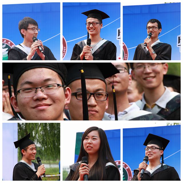接下來(lái),畢業(yè)典禮的主角——2015屆的畢業(yè)生們,每個(gè)人走到臺(tái)上,表達(dá)自己此時(shí)此刻的所感所想:欣賞、感謝、留戀、希望、祝福……曾經(jīng)難啃的數(shù)學(xué)物理方法課大家印象深刻;宿舍里的綽號(hào)“暗語(yǔ)”在這里又被喚起;深深的鞠躬表達(dá)著對(duì)學(xué)校和老師的感謝;在北湖畢業(yè)這個(gè)瞬間,這畫面被深藏在心里……