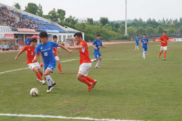 下午15點(diǎn)整,主裁判吹響全場(chǎng)比賽開(kāi)始的哨音,一場(chǎng)相互“知根知底”的對(duì)攻戰(zhàn)就此上演。劍指冠軍的北理工隊(duì)率先發(fā)難:第4分鐘,北理工發(fā)出前場(chǎng)界外球交給場(chǎng)上隊(duì)長(zhǎng)7號(hào)韓光徽,韓光徽領(lǐng)球轉(zhuǎn)身,順勢(shì)推給插上的19號(hào)何子超,后者瞄向后點(diǎn)起球傳中,被河海大學(xué)防守隊(duì)員奮力破壞。第15分鐘,北理工獲得罰球區(qū)左側(cè)定位球機(jī)會(huì),韓光徽罰至前點(diǎn)尋找身高1米92的5號(hào)王偉,后者頭球后蹭遺憾擊中門(mén)框。第21分鐘,河海大學(xué)20號(hào)隊(duì)員接傳球后成功突破北理工防線(xiàn),即將形成破門(mén)良機(jī)時(shí),北理工中后衛(wèi)26號(hào)靜軒拍馬殺到將球破壞。第24分鐘,河海大學(xué)隊(duì)員在多名理工隊(duì)員的包夾下靈光一現(xiàn),抬腳墊射,皮球被北理工門(mén)將劉天鑫摘下。隨后,比賽變得膠著,河海大學(xué)在防守端的表現(xiàn)堪稱(chēng)完美,北理工向河海大學(xué)球門(mén)發(fā)起數(shù)次沖擊均無(wú)功而返。第44分鐘,河海大學(xué)前場(chǎng)斷球,就地打出快速反擊并成功殺入北理工罰球區(qū),隨后的大力射門(mén)經(jīng)北理工后衛(wèi)何子超倒地?cái)r擋后減速,北理工門(mén)將劉天鑫輕松將球沒(méi)收。隨即上半場(chǎng)比賽結(jié)束,雙方均無(wú)建樹(shù)。