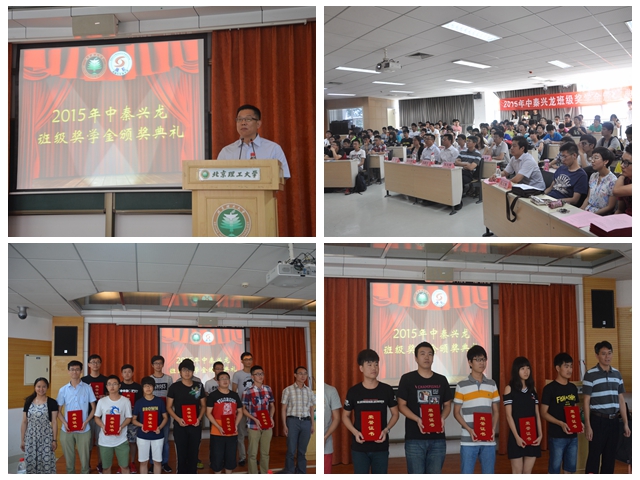 2015年6月19日上午,第二屆中秦興龍班級獎學(xué)金頒獎典禮在良鄉(xiāng)校區(qū)舉辦,中秦興龍工業(yè)集團(tuán)副總經(jīng)理張殿杰、興龍源金屬制品有限公司總經(jīng)理胡忠臣、興龍源金屬制品有限公司副總經(jīng)理齊文遠(yuǎn)等企業(yè)來賓以及校長助理郝志強、學(xué)生工作處副處長許欣、基礎(chǔ)教育學(xué)院副院長朱光輝等老師參加了本次活動。儀式由機械與車輛學(xué)院黨委副書記、副院長范文輝主持。