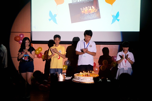 此外,晚會(huì)還精心準(zhǔn)備了一個(gè)特別環(huán)節(jié)——為在科學(xué)營(yíng)活動(dòng)期間過生日的營(yíng)員和帶隊(duì)老師集體慶生。家人朋友的視頻祝福、蛋糕、蠟燭,全場(chǎng)合唱生日歌,溫馨的場(chǎng)面感動(dòng)了在場(chǎng)的每個(gè)人。晚會(huì)的最后,全體志愿者演唱的青春版校歌更是將全場(chǎng)的氣氛推向了高潮。