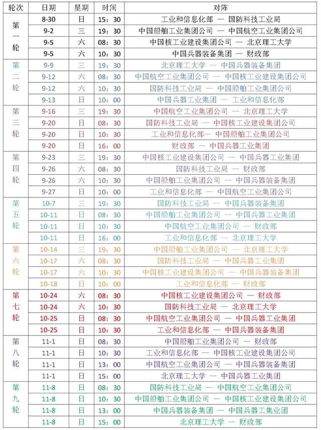 首屆“軍工杯”足球邀請賽將持續(xù)至11月8日,比賽地點為北理工西足球場。期間,為慶祝北京理工大學(xué)75周年華誕,作為“軍工杯”足球賽的特別環(huán)節(jié),9月19日將舉行“校慶杯”明星邀請賽,由來自“軍工杯”9支參賽隊伍的球員組成“明星隊”對陣北理工足球隊,為廣大師生校友球迷朋友獻上精彩賽況,敬請關(guān)注。共話軍工情,同筑強國夢,讓我們共同預(yù)祝首屆“軍工杯”足球邀請賽取得圓滿成功!