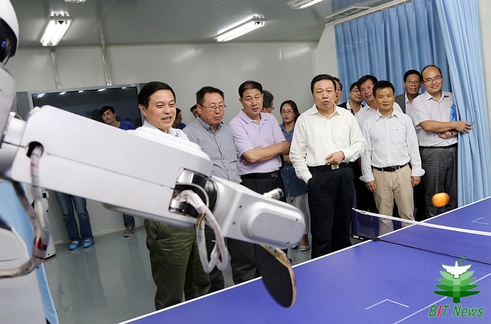 2015年9月11日下午,中國科學技術(shù)協(xié)會黨組書記尚勇一行來到我校智能機器人研究所調(diào)研,陪同調(diào)研的還有中國科學技術(shù)協(xié)會辦公廳主任任福君、國際聯(lián)絡(luò)部副部長陳劍、辦公廳處長寧方剛。北京理工大學校長胡海巖、黨委副書記、副校長項昌樂、副校長方岱寧,教授福田敏男,長江學者特聘教授黃強,學校辦公室副主任叢磊、科學技術(shù)研究院基礎(chǔ)科研部部長馬少鵬、國際交流合作處副處長邢清清、機電學院院長焦清介、自動化學院院長王軍政參加了調(diào)研。