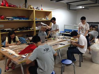 暑期集訓(xùn)的核心任務(wù)是進(jìn)一步培訓(xùn)2014級的新隊(duì)員并備戰(zhàn)2015年科研類全國航空航天模型錦標(biāo)賽、“中航工業(yè)杯”等大型賽事。每一個(gè)項(xiàng)目組都有各自亟待解決的關(guān)鍵問題,一次次的計(jì)算、模擬、修改圖紙,日以繼夜的辛勞制作最終轉(zhuǎn)化成了一架架驗(yàn)證機(jī)與無數(shù)寶貴的經(jīng)驗(yàn)積累。結(jié)束了一天的集訓(xùn)之后,隊(duì)員們往往渾身酸痛,疲憊不堪??墒羌幢闳绱耍總€(gè)人都只是愈發(fā)努力,從來沒有人抱怨過半句。