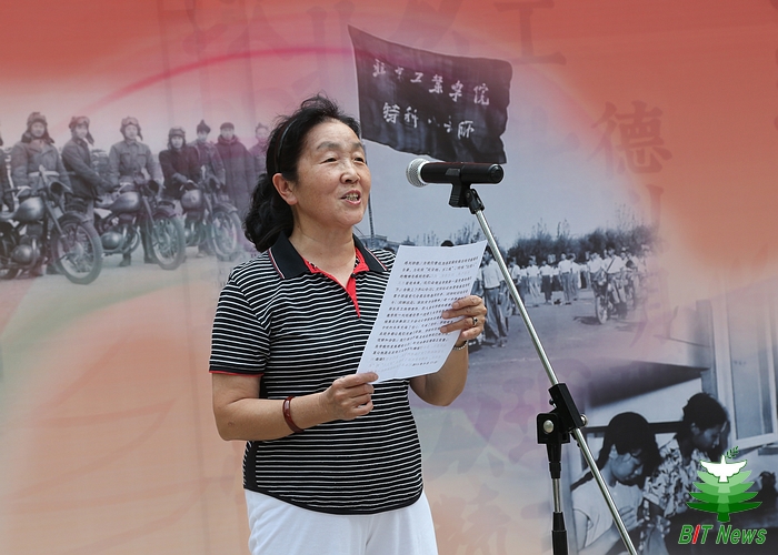 離退休教職工黨委委員郭景華代表離退休教職工發(fā)言,她深情回顧了北京工業(yè)學(xué)院時(shí)期的發(fā)展歷史,她講到離退休教職工們都親身經(jīng)歷了從“京工人”到“北理工人”的巨大改變,為學(xué)校始終在國(guó)家發(fā)展、國(guó)防建設(shè)方面做出的貢獻(xiàn)感到自豪,為秉承“延安根、軍工魂”,傳承北理工精神而感到光榮。