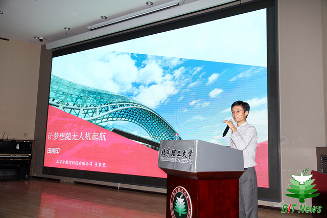 田剛印與大家進(jìn)行了近一小時(shí)的交流互動(dòng),通過(guò)幾段視頻展示目前世界領(lǐng)先的專業(yè)領(lǐng)域成果和未來(lái)發(fā)展方向,以低調(diào)的自信解答在場(chǎng)師生的各種疑問(wèn)。他以捐助一架無(wú)人機(jī)來(lái)慶賀北理工75周年校慶,全力支持北理工學(xué)子的航模夢(mèng)想。
