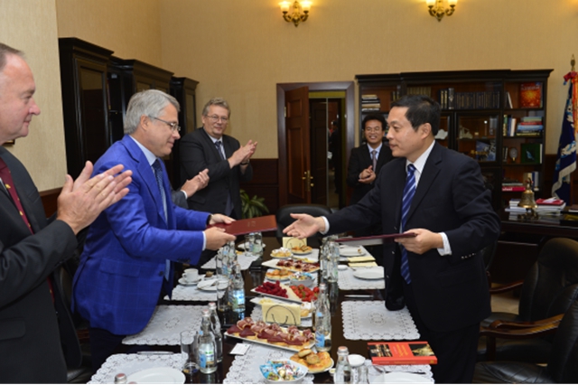 胡海巖校長與MEPHI第一副校長簽署合作協(xié)議和共建實驗室協(xié)議