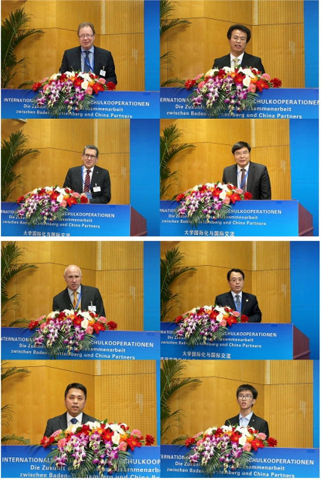 研討會(huì)上,斯圖加特大學(xué)校長(zhǎng)Ressel教授、北理工國(guó)際處處長(zhǎng)唐水源教授、巴符騰堡州州立雙元制大學(xué)總校長(zhǎng)Geilsdorfer教授、對(duì)外經(jīng)濟(jì)貿(mào)易大學(xué)副校長(zhǎng)趙忠秀教授、曼海姆應(yīng)用科技大學(xué)校長(zhǎng)Leonhard教授、卓越聯(lián)盟高校代表西北工業(yè)大學(xué)國(guó)際處副處長(zhǎng)張文濤先生作專(zhuān)題報(bào)告,分別闡述了中德高校合作的戰(zhàn)略選擇、學(xué)位項(xiàng)目、聯(lián)合研究與伙伴關(guān)系展望。北理工-卡爾斯魯厄理工大學(xué)校友牛霈先生、北理工-斯圖加特大學(xué)校友王奕涵先生作為留德學(xué)生代表發(fā)言。