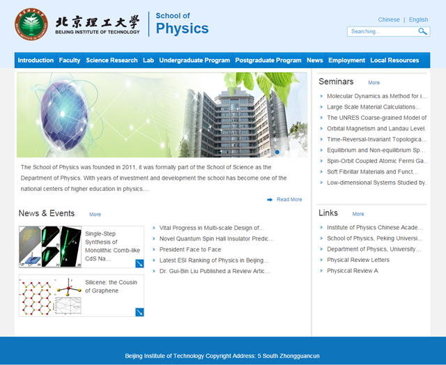北京理工大學物理學院英文網(wǎng)站正式上線