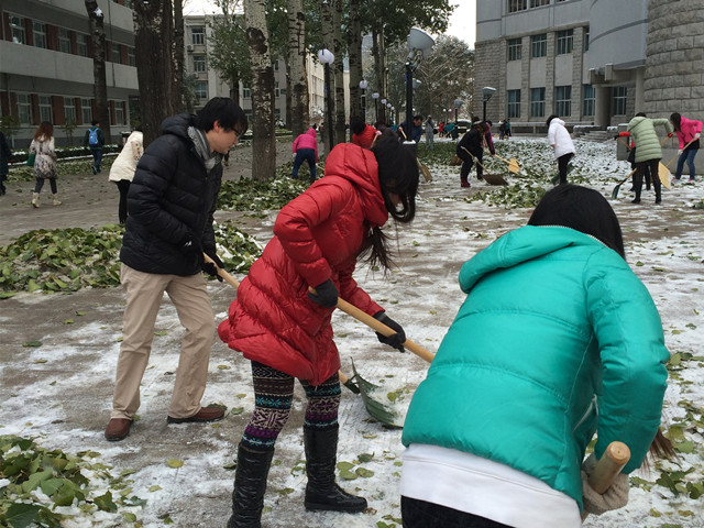 經(jīng)過兩個(gè)多小時(shí)的奮戰(zhàn),厚厚的積雪被鏟除了,校園的主要干道積雪基本清理干凈,確保了校園道路的暢通無阻,為師生們開辟了一條安全之路。