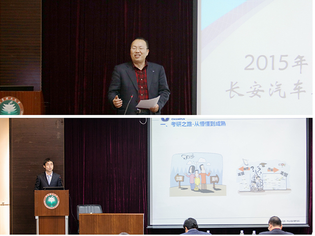 頒獎儀式結(jié)束后,長安汽車北京研究院北京理工大學校友郭偉東師兄做了題為“長安伴我成長”的“青春·成長”主題分享,郭偉東師兄結(jié)合大學考研經(jīng)歷與在長安汽車北京研究院的成長經(jīng)歷,向同學們解讀了考研之路由懵懂到成熟的心態(tài)轉(zhuǎn)變,初出學校由學生到員工的角色轉(zhuǎn)變,立足崗位由一知半解到獨當一面的內(nèi)在轉(zhuǎn)變。郭偉東師兄中肯的建議與意見,贏得了在座師生的陣陣掌聲。