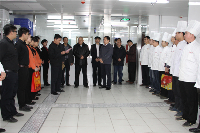 胡海巖代表學校向春節(jié)期間仍堅守在食堂一線的我校后勤員工表示感謝;對他們在節(jié)日期間放棄與家人團聚、堅守崗位的奉獻精神致以誠摯敬意;對后勤集團在承攬工信部食堂和科工局食堂這一年來所取得的成績給予了充分肯定。在猴年春節(jié)即將來臨之際,向全體外攬食堂員工及其家屬致以新春問候,希望在新的一年里大家再接再厲,不斷提高服務水平,確保食品衛(wèi)生安全,服務質量再上新臺階。