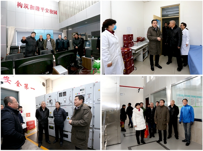 1月31日,校黨委書(shū)記張煒、副校長(zhǎng)李和章、校長(zhǎng)助理郝志強(qiáng)前往良鄉(xiāng)校區(qū),先后赴校園保安值班室、總配電室、良鄉(xiāng)校區(qū)學(xué)生食堂、學(xué)生公寓樓值班室、良鄉(xiāng)校區(qū)鍋爐房、良鄉(xiāng)校區(qū)監(jiān)控指揮中心等地方,慰問(wèn)堅(jiān)守崗位的工作人員。