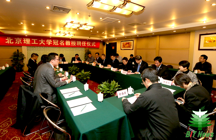 聘任儀式上,人事處處長韓寶玲首先了介紹“冠名教授”相關背景及“TCL杰出教授”選聘情況,隨后由北京理工大學校長胡海巖院士和TCL集團董事長李東生先生共同向孫逢春教授頒發(fā)“TCL杰出教授”聘書。
