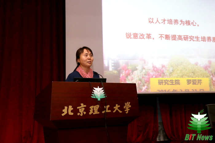 研究生院常務(wù)副院長(zhǎng)羅愛(ài)芹教授做了“以人才培養(yǎng)為核心,銳意改革,不斷提高研究生培養(yǎng)質(zhì)量”報(bào)告。羅院長(zhǎng)回顧了2015年研究生人才培養(yǎng)主要工作與成效,總結(jié)給出了研究生培養(yǎng)過(guò)程中的問(wèn)題和對(duì)策,介紹了2016年研究生院將要開(kāi)展的重點(diǎn)工作。