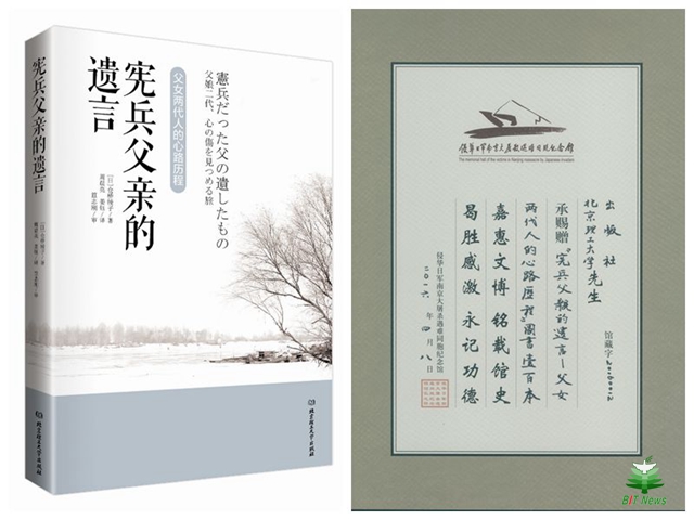 本書作者倉橋綾子女士的父親大澤雄吉,是一位參與過侵華戰(zhàn)爭的日本憲兵,在病重之時,拿出一張紙條,要求將紙條上寫的自己對中國人民的愧疚與懺悔刻在自己的墓碑上。為此,作者背負著沉重的心理壓力,走上了漫長的追溯真相的道路。倉橋女士多次來到中國,探究父親在戰(zhàn)爭中所犯下的罪行,替父親的行為向中國人民道歉謝罪。最終,作者沖破家庭、生活、社會的種種阻力,實現了父親的遺愿,為父親立起了“謝罪碑”。作者倉橋女士曾委托東史郎先生將其父親“謝罪碑”的相片轉交給南京大屠殺遇難同胞紀念館,并參加第15次“悼念南京大屠殺遇難者植樹訪華團”來到南京植樹,為侵略戰(zhàn)爭贖罪,為中日友好祈福。紀念館王偉民副館長在現場展示了當時留存的相關資料。