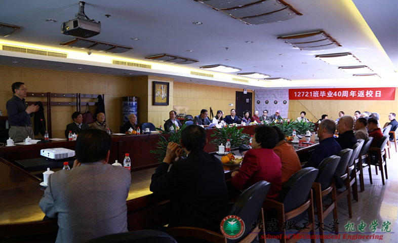 2016年4月23日,北理工機(jī)電學(xué)院畢業(yè)四十周年的12721班的同學(xué)從天南海北回到正是草長鶯飛的北京,相聚于母校,共話同窗情。座談會在國際教育交流交流中心第一會議室召開,機(jī)電學(xué)院院長焦清介、院黨委副書記陳軍、校友會辦公室李芬、部分老教師和12721班三十余名校友共同參加了會議。