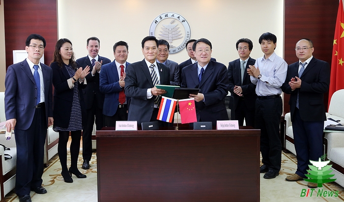與會人員就兩校擬開展的國際合作項目開展了討論。張煒和Worsak分別代表兩校簽署了校際合作協(xié)議和學生交換協(xié)議。會談后,亞洲理工大學代表團參觀了機械與車輛學院激光微納米制造實驗室。院長姜瀾教授向Worsak介紹了實驗室的研究方向及主要學術成果。