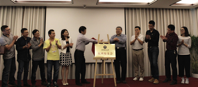 會上舉行了隆重的揭牌儀式。學(xué)校原黨委書記焦文俊、校友會辦公室主任付大軍、杭州校友會長鄒志剛共同為杭州校友會揭牌。
