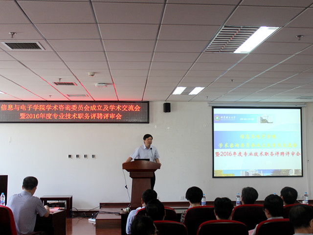 陳杰首先代表學(xué)校致歡迎詞,對參加會議的學(xué)術(shù)咨詢委員會專家表示歡迎和感謝,同時衷心希望專家們能對信息與電子學(xué)院和學(xué)校的發(fā)展提供指導(dǎo)和幫助。他指出,學(xué)術(shù)咨詢委員會的成立對于信息與電子學(xué)院的學(xué)科建設(shè)和學(xué)院發(fā)展具有重要意義,委員會參與學(xué)院本年度專業(yè)技術(shù)職務(wù)評聘,也是對當前這項重要工作的極大支持。隨后,陳杰向?qū)W術(shù)咨詢委員會專家分別頒發(fā)了聘書并合影留念。