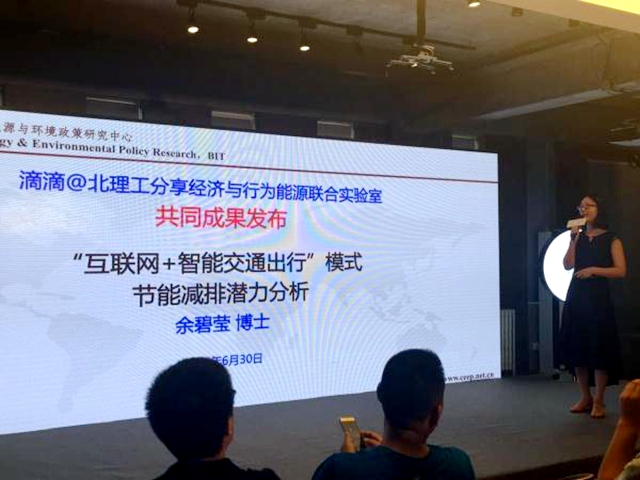 在發(fā)布會上,能源與環(huán)境政策研究中心余碧瑩副教授發(fā)布了“互聯(lián)網+智能交通出行”模式節(jié)能減排潛力分析的共同研究成果。滴滴@北理工分享經濟與行為能源聯(lián)合實驗室在調查數據的基礎上,結合滴滴智能出行大數據,對京津冀地區(qū)共享出行帶來的直接和間接節(jié)能減排效果進行了定量評估。國內有近百家主流媒體參加了本次發(fā)布會。