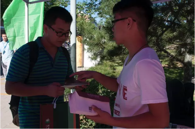 ▲同伴工作時(shí),及時(shí)提供需要的幫助。彼此之間密切的配合是我們能夠完成好復(fù)雜繁瑣的迎新工作的前提。