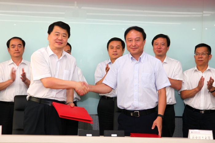 王曉鋒與韓永貴共同簽署了校企戰(zhàn)略合作框架協(xié)議。