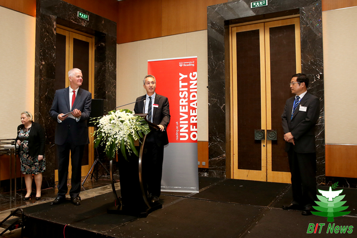 胡海巖校長對里丁大學授予他榮譽理學博士學位向David Bell校長表示感謝。他說,這不僅是他個人的榮譽,也是對北理工每一位促進兩校合作人員的嘉獎,對推動雙方進一步合作具有重要意義。胡海巖高度贊揚了里丁大學建校90年來取得的輝煌成就,表示大學的聲譽和發(fā)展與學校的校友成績和社會貢獻息息相關,他通過北理工70多年發(fā)展歷程、杰出校友事跡、北理工2020年戰(zhàn)略規(guī)劃目標向在座嘉賓闡述了北理工在中國現(xiàn)代化建設和國家戰(zhàn)略發(fā)展中起到的引領作用,希望通過師資隊伍建設和國際合作等措施進一步加強人才培養(yǎng),為社會輸送更多的杰出人才,為促進兩校和中英教育合作貢獻力量。