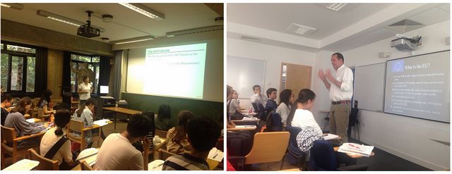 此次暑期項(xiàng)目學(xué)習(xí)的主要專(zhuān)業(yè)內(nèi)容為《宏觀(guān)經(jīng)濟(jì)學(xué)》課程,該課程由劍橋大學(xué)國(guó)王學(xué)院的老師Dr.Elisa Fariglia及Dr.Chryssi Giannitsarou分別為同學(xué)們講授。其講授內(nèi)容與國(guó)王學(xué)院同年級(jí)經(jīng)濟(jì)系學(xué)生學(xué)習(xí)的內(nèi)容相同。英國(guó)大學(xué)的本科是三年制,而作為世界一流大學(xué)的劍橋大學(xué),其課程的內(nèi)容量、相對(duì)難度和考核的嚴(yán)格都是眾所周知的。同學(xué)們?cè)谧畛跎险n時(shí)感到有些吃力,或?qū)σ恍?zhuān)業(yè)名詞、理論基礎(chǔ)不熟悉,或英語(yǔ)聽(tīng)力有困難。隨后,同學(xué)們調(diào)整學(xué)習(xí)方法,利用課余時(shí)間提前預(yù)習(xí)課程,并成立了學(xué)習(xí)小組,相互交流,互相協(xié)作。在學(xué)習(xí)過(guò)程中,老師鼓勵(lì)學(xué)生根據(jù)自己的情況隨時(shí)提出問(wèn)題,并在課堂上和同學(xué)們一起討論,及時(shí)理清思路,增強(qiáng)學(xué)習(xí)效果。同學(xué)們也紛紛打消了自己在異國(guó)學(xué)習(xí)的緊張感,珍惜短暫而寶貴的機(jī)會(huì),積極投身于課堂之中,主動(dòng)參與課堂互動(dòng)。除了專(zhuān)業(yè)課程以外,暑期項(xiàng)目安排了劍橋大學(xué)教授的學(xué)術(shù)專(zhuān)題講座,包括“英國(guó)脫歐”、“人民幣國(guó)際化”等諸多有特色的專(zhuān)題。講座上學(xué)生們?cè)隈雎?tīng)教授們智慧演講的同時(shí),領(lǐng)悟到了學(xué)術(shù)研究的方法和學(xué)術(shù)的真正魅力。