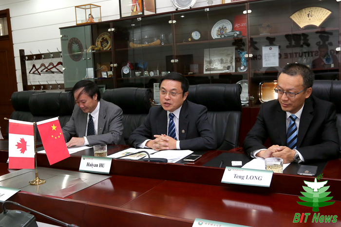 胡海巖校長(zhǎng)歡迎Stoicheff校長(zhǎng)首次訪問(wèn)北京理工大學(xué),他介紹了學(xué)校的校情,并回顧了兩校自2005年建立校際合作關(guān)系以來(lái)開(kāi)展的教師、學(xué)生交流及科研、文化合作項(xiàng)目。他表示,薩斯喀徹溫大學(xué)是北京理工大學(xué)在加拿大的重要合作伙伴院校,希望兩校在科研、學(xué)生聯(lián)合培養(yǎng)等方面開(kāi)展更深層次的合作。