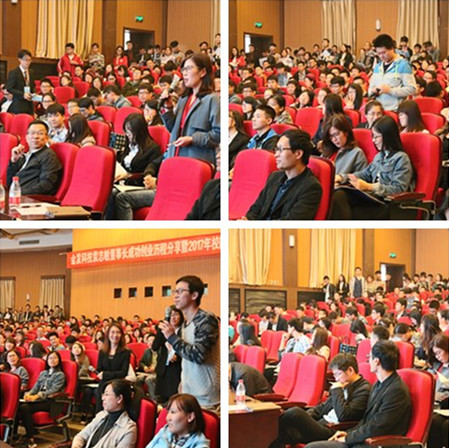 袁志敏向在座的學(xué)子們分享了自己的創(chuàng)業(yè)歷程?;厥桩?dāng)年創(chuàng)業(yè)的艱辛,如今成功的喜悅,他表達(dá)了自己的萬(wàn)千感慨。二十多年來(lái),金發(fā)科技從無(wú)到有,從小到大,自主創(chuàng)新碩果累累,填補(bǔ)國(guó)內(nèi)多項(xiàng)空白,徹底打破國(guó)內(nèi)改性塑料長(zhǎng)期依賴進(jìn)口的局面。金發(fā)科技的驕人業(yè)績(jī),每一步成長(zhǎng)的足跡,無(wú)不凝聚著股東、政府領(lǐng)導(dǎo)的大力支持、經(jīng)營(yíng)班子的精心運(yùn)作、全體員工的辛勤勞動(dòng)以及社會(huì)各界的厚愛(ài)。袁志敏鼓勵(lì)在座的學(xué)弟學(xué)妹們,不要懼怕失敗,因?yàn)閯?chuàng)業(yè)注定是由很多失敗堆積而成的,年輕經(jīng)受得起失敗,走過(guò)荊棘,必將迎來(lái)成功。