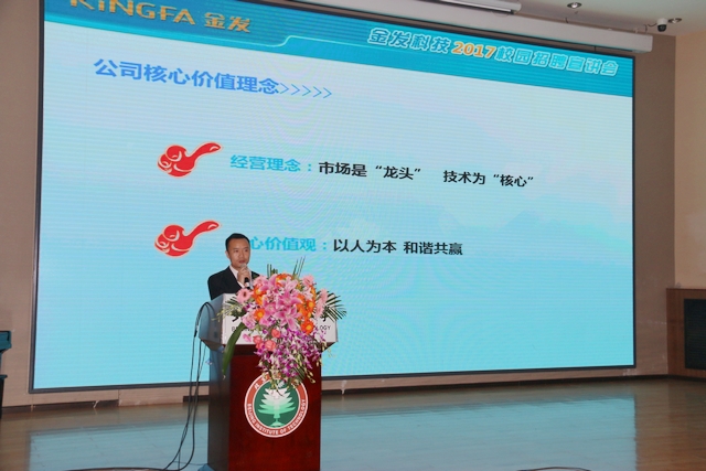 活動(dòng)最后,金發(fā)科技行政部部長(zhǎng)劉偉向大家介紹了企業(yè)的發(fā)展歷程、薪酬福利、職業(yè)發(fā)展等相關(guān)情況,讓同學(xué)們更進(jìn)一步感受到了金發(fā)科技集團(tuán)的企業(yè)文化,了解到了企業(yè)對(duì)人才的重視。