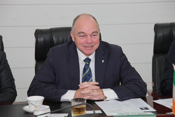 ?。羘drew Deeks校長(zhǎng)感謝胡校長(zhǎng)的熱情接待,并介紹了愛爾蘭都柏林大學(xué)的校情、專業(yè)設(shè)置以及科研重點(diǎn)領(lǐng)域。他對(duì)兩校已有合作,特別是學(xué)生交換項(xiàng)目進(jìn)展表示滿意,希望未來進(jìn)一步開拓學(xué)生聯(lián)合培養(yǎng)和科研合作項(xiàng)目。