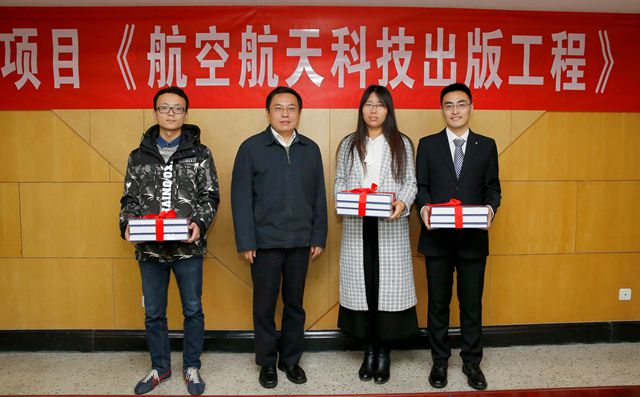 胡海巖校長(zhǎng)向北京理工大學(xué)、北京航空航天大學(xué)、南京航空航天大學(xué)等三所院校的研究生贈(zèng)送圖書(shū)。