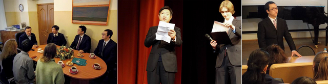 在莫斯科大學藝術系成立十五周年慶祝晚會上,院黨委書記郭宏代表北理工設計與藝術學院致辭,祝賀莫斯科大學藝術系建立15年來取得的豐碩成果,并表示將進一步加強雙方在教學與研究領域的合作。郭宏書記致辭后,莫斯科大學校長薩多夫尼奇·維克多·安東諾維奇對雙方以往學生合作培養(yǎng)與學術交流給予了高度評價。莫大藝術系主任亞歷山大·羅波達諾夫對在該系學習的我院學生表現(xiàn)出的專業(yè)素養(yǎng)與學習熱情給予充分肯定,并希望雙方以后能夠在教師學術交流、學術著作出版等方面開展深入合作。