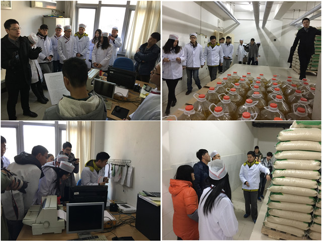 餐飲服務中心物資供應部主任武默涵帶領學生先行參觀了良鄉(xiāng)采購站,介紹了食品原材料的采購流程和供貨商的選擇途徑等,并強調了食堂所使用的食品原材料都來自高校聯(lián)合采購中心認證合格的供貨商,其中米、面、油等大宗原材料均由北京高校基地直供,日常管理中也對原材料的質量嚴格把關和檢驗。隨后武主任向學生現場展示了供應商資質和驗貨單等表單,又帶領學生們參觀了副食庫、主食庫和冷庫,并講解了食品原材料出庫、入庫、存儲等環(huán)節(jié)嚴格的工作制度和注意事項。尤其針對學生普遍關心的食用油問題解答了疑惑,強調了食堂所使用的油是進口無調和的純大豆油。