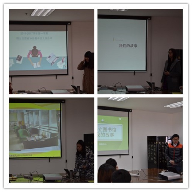 來自微塵志愿者協(xié)會的楊玨瑩、綠風志愿者協(xié)會的郄天琪、綠萌資源與環(huán)境保護協(xié)會的欒英婷、學生會權(quán)益中心的孫文景同學,分別對各自社團一年來參加圖書館的志愿工作進行了總結(jié),并提出下一年的工作目標。