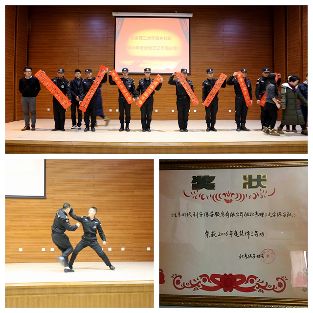 為加強(qiáng)良鄉(xiāng)校區(qū)安全保衛(wèi)工作,樹(shù)立典型、表彰先進(jìn),良鄉(xiāng)校區(qū)2016年度安全保衛(wèi)工作表彰大會(huì)于2017年1月17日舉行。北京理工大學(xué)良鄉(xiāng)校區(qū)管理處處長(zhǎng)朱光輝、副處長(zhǎng)霍俊斌、副處長(zhǎng)張磊,北京時(shí)代科安保安服務(wù)總公司董事長(zhǎng)張傳橋、北京國(guó)基偉業(yè)物業(yè)管理有限公司董事長(zhǎng)李笑天出席表彰會(huì),校區(qū)全體保安員、師生代表共120余人參加表彰會(huì)。
