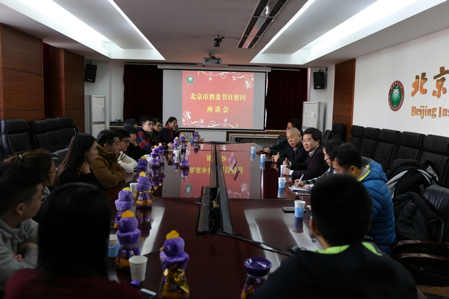 1月23日上午,北京市教育委員會副主任李奕一行蒞臨我校,代表北京市教委、教工委慰問寒假留校學(xué)生并進(jìn)行座談,副校長李和章、學(xué)生工作處處長郭彥懿、副處長徐貴寶參加座談。
