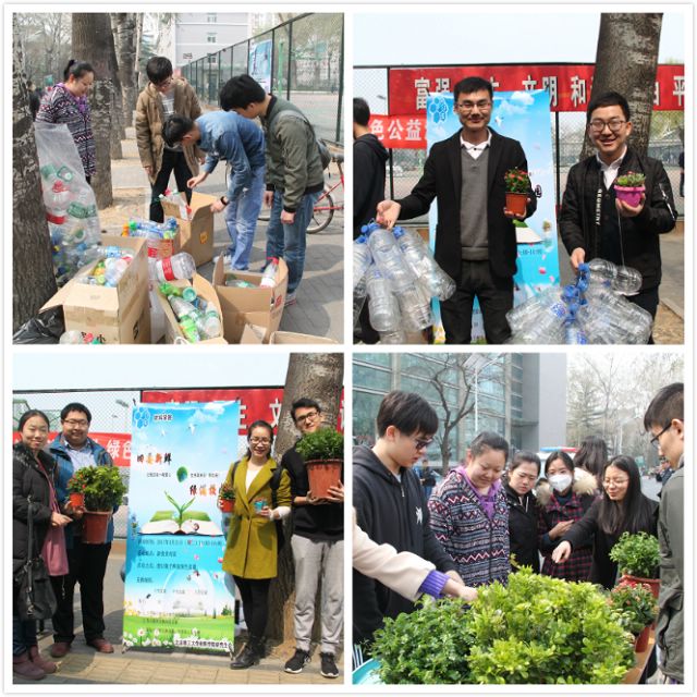 “舊要新鮮,綠滿校園”環(huán)保公益活動,收集對環(huán)境的一份尊重,換得一抹賞心悅目的綠色,用廢舊瓶子換取心儀盆栽,讓環(huán)保從你我做起,為共同建設綠色校園、美好校園貢獻自己的一份力量。