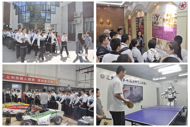 歡迎儀式結(jié)束后,來訪師生分成三組相繼參觀校史館、車輛學(xué)院學(xué)生創(chuàng)新創(chuàng)業(yè)實踐中心、機電學(xué)院智能機器人研究所等地。在校史館,講解人員通過一幅幅老照片,耐心細(xì)致地為大家講述北理工的發(fā)展歷程;在車輛學(xué)院學(xué)生創(chuàng)新創(chuàng)業(yè)實踐中心,車隊負(fù)責(zé)人為大家展示了節(jié)能競技賽車、大學(xué)生方程式賽車等自主研制車型以及車隊在國內(nèi)外比賽中所取得的榮譽,并就同學(xué)們提出的問題進(jìn)行解答;在機電學(xué)院智能機器人研究所,大家參觀了新型的主要用于醫(yī)療手術(shù)的微小型機器人實驗室,并與“匯童”系列仿人機器人進(jìn)行了乒乓球比賽等互動活動,獲得了在場師生的一致好評。
