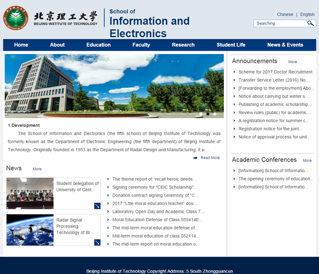 北京理工大學(xué)信息與電子學(xué)院英文網(wǎng)正式上線