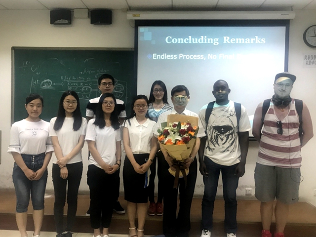 2017年5月15日,應(yīng)北京理工大學(xué)法學(xué)院邀請,韓國首爾大學(xué)法學(xué)院前院長安京煥教授來到北理工法學(xué)院開始為期兩周的人權(quán)法授課。楊成銘教授和李華副教授將安教授隆重介紹給選修該課程的國際法專業(yè)碩士生和留學(xué)生。時逢韓國教師節(jié),碩士生甄宏偉代表大家向安教授獻花以表祝賀。