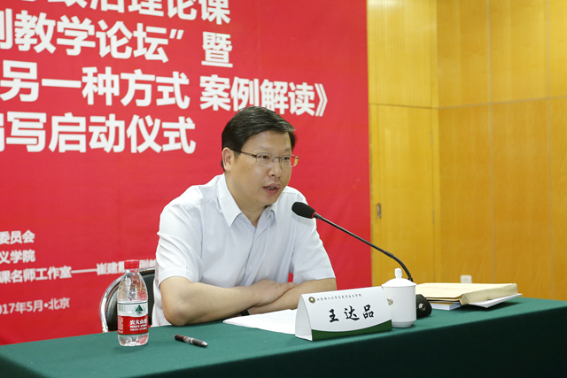 王達品在主題報告中指出,此次論壇的召開適逢進一步貫徹落實習近平總書記在全國高校思想政治工作會議上的重要講話和中共中央、國務(wù)院《關(guān)于加強和改進新形勢下高校思想政治工作的意見》精神之際,它的舉辦對增強思想政治理論課教學(xué)的吸引力、說服力和感染力具有很強的現(xiàn)實意義?!按藿ㄏ及咐虒W(xué)工作室”已經(jīng)成為北京市的一塊品牌,并將繼續(xù)推出新的案例,工作室的建設(shè)和富有成效的工作是北京市思想政治理論課教學(xué)改革的重要成果,體現(xiàn)出責任的擔當。對如何把握全國高校思想政治工作會議精神,他指出,要建立責任意識、改革意識、問題意識、協(xié)同意識,建立市級與校級協(xié)同機制,對精神的把握要轉(zhuǎn)化為對工作的指導(dǎo),將精神融入到辦學(xué)中;要堅持創(chuàng)新,因勢而化,遵循學(xué)生成長規(guī)律育人;在推進思政課的建設(shè)上,北京應(yīng)堅持一流標準,走在全國前列。